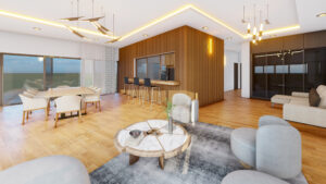 Projet garantissant ainsi un cadre de vie d’exception chaleureux et moderne conçu pour allier luxe et confort, bénéficie d’une luminosité naturelle optimale grâce à de vastes ouvertures et des espaces de vie parfaitement orientés, inondés de lumière tout au long de la journée.